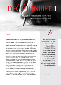 Il-kumitat għamel 30 laqgħa ta’ madwar tliet sigħat il-waħda biex jiddiskuti dawn il-varjanti. Fid-diskussjonijiet tagħhom il-membri tal-kumitat dejjem żammew quddiem għajnejhom il-bosta prinċipji differenti li jsawru l-ortografija tal-Malti, ewlenin fosthom, il-prinċipju fonetiku, il-prinċipju fonoloġiku, il-prinċipju etimoloġiku u l-prinċipju morfoloġiku. Għaldaqstant l-għażla finali tal-verżjoni magħżula kienet raġunata u meqjusa biex kemm jista’ jkun ma tkunx arbitrarja. Il-Kumitat ippreżenta rapport dwar id-deċiżjonijiet tiegħu lill-KNM u dan approva dan ir-rapport b’mod unanimu fil-laqgħat tat-12 u s-16 ta’ Ġunju 2008. Dan ir-rapport ġie ppubblikat fi ktejjeb bl-isem ta’ Deċiżjonijiet 1. Dawn id-deċiżjonijiet saru uffiċjali bil-pubblikazzjoni tagħhom fil-Gazzetta tal-Gvern, ħarġa numru 18,286 fil-25 ta’ Lulju 2008. Ġie deċiż li jingħata perijodu ta’ tliet snin li matulu l-varjanti li se jitwarrbu jibqgħu ttollerati u jitqiesu korretti iżda wara dan il-perijodu jibdew jitqiesu tajbin il-forom magħżula biss.
